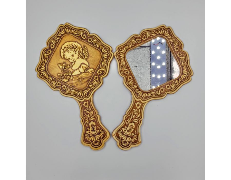 Зеркало Квадратное с ручкой Ангел оптом. Из бересты