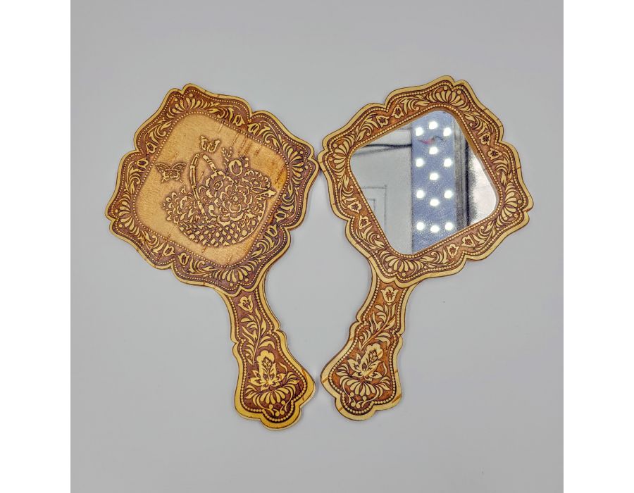 Зеркало Квадратное с ручкой Корзинка с цветами и бабочкой оптом. Из бересты