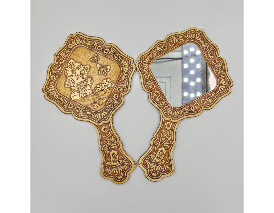 Зеркало Квадратное с ручкой Котёнок оптом. Из бересты