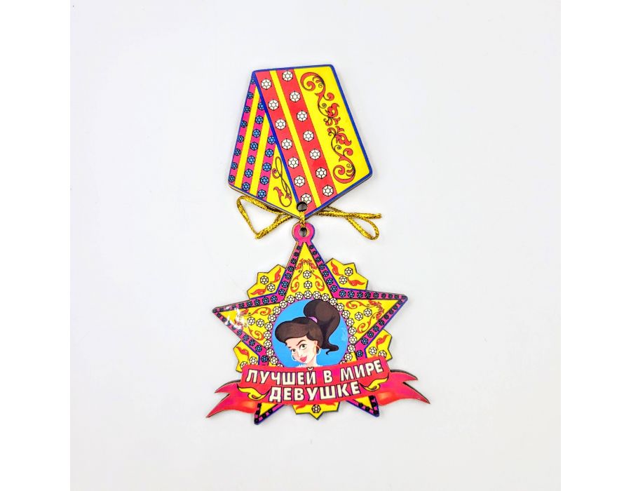 Магнит Медаль Лучшей в мире девушке оптом. Магнит медаль, фанера