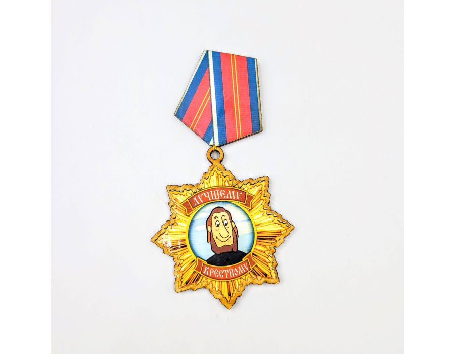 Магнит Медаль Лучшему крёстному оптом. Магнит медаль, фанера
