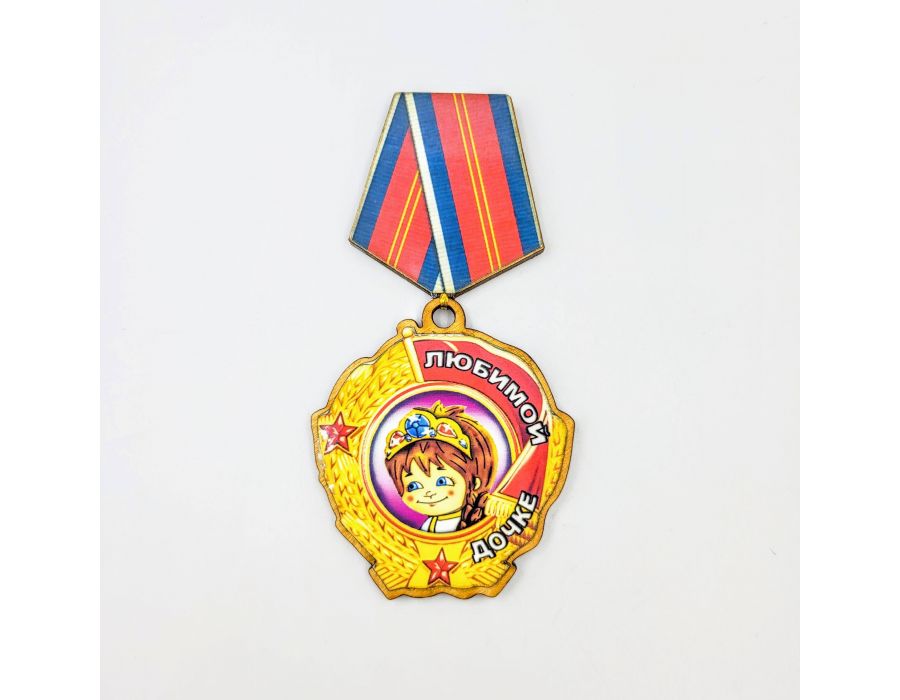 Магнит Медаль Любимой дочке оптом. Магнит медаль, фанера