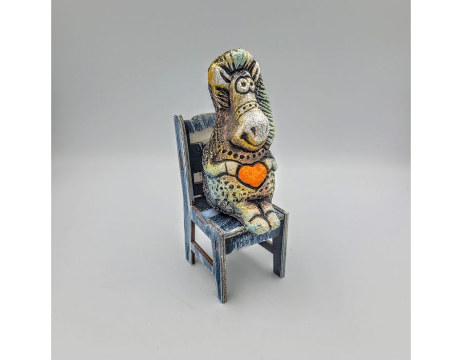 Лошадка на стуле оптом. шамот, ангобная и глазурная роспись, оптом.